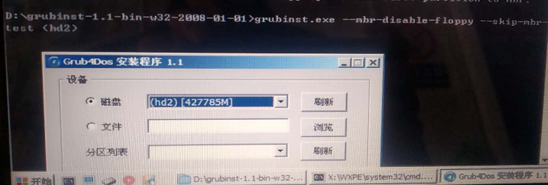 打开grubinst_gui.exe,在硬盘目录中找到相应容量的硬盘,并记下括号内的字符如(hd2)表示当前需要操作的是hd2硬盘;